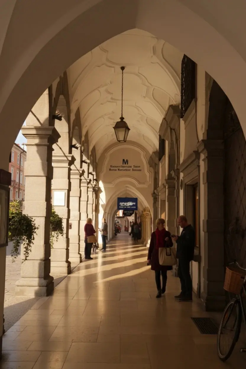 lined with elegant arches, boutique shops, cozy cafés, and traditional Tyrolean facades.