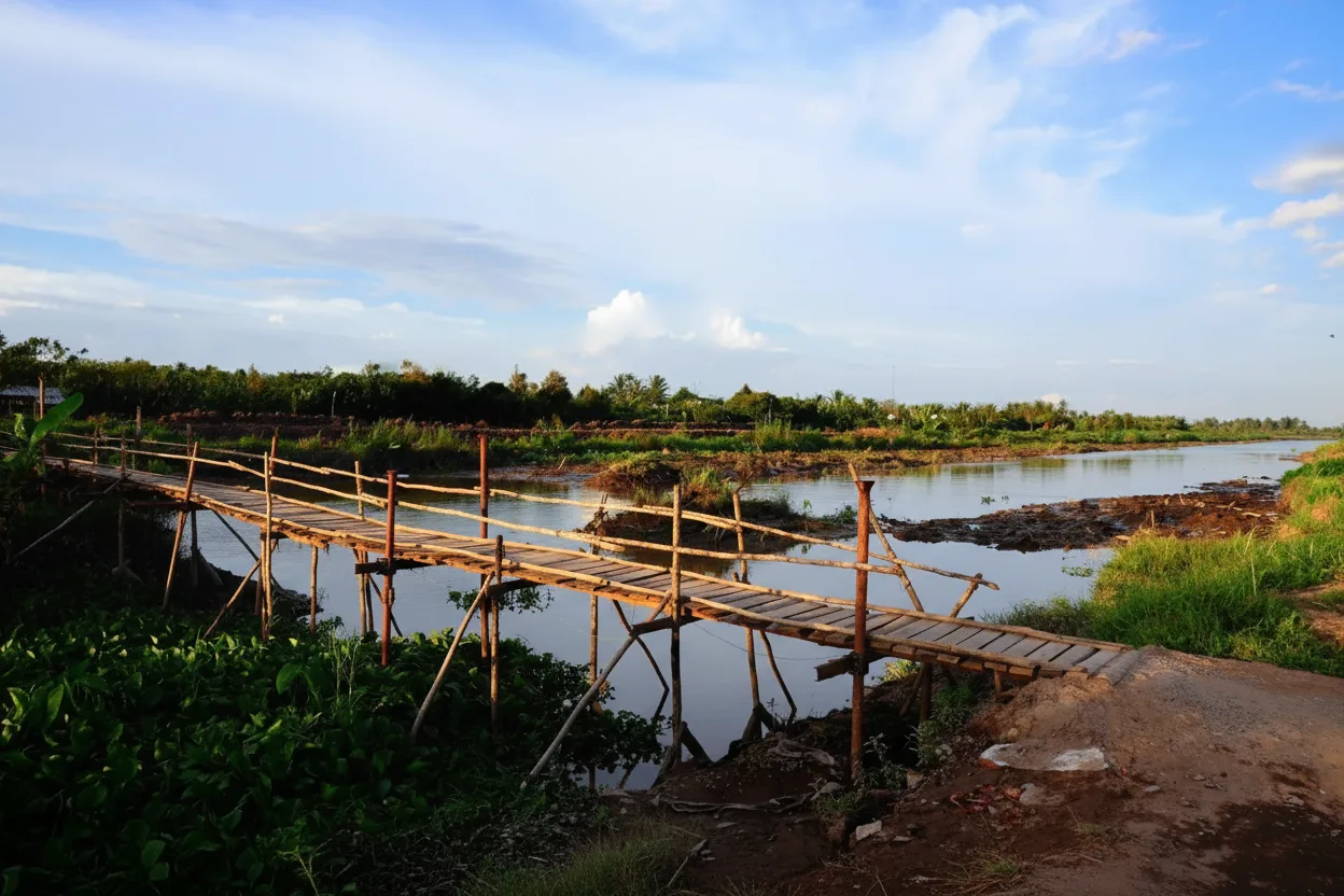 Village bridges are a common sight throughout the Mekong Delta, connecting homes, farms, and small communities across canals. These narrow bridges are usually built from wood or concrete and form an important part of daily village life. For travelers, village bridges offer a chance to observe rural movement and quiet canal scenery. They are simple yet photogenic structures that reflect the practical design and peaceful rhythm of Mekong Delta villages.