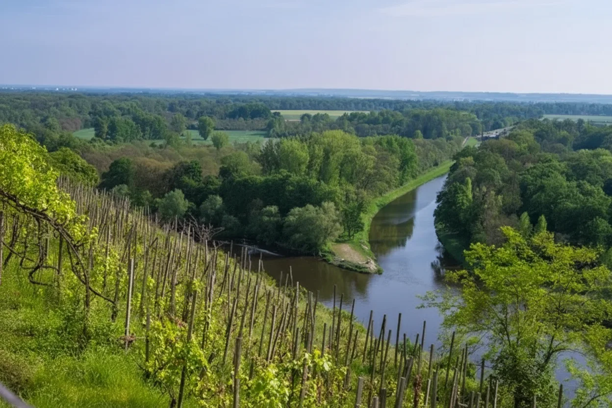 regions on foot. The gently sloping vineyards surround the town and provide open views of the rivers,