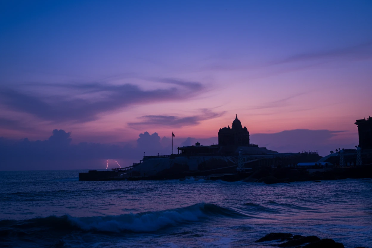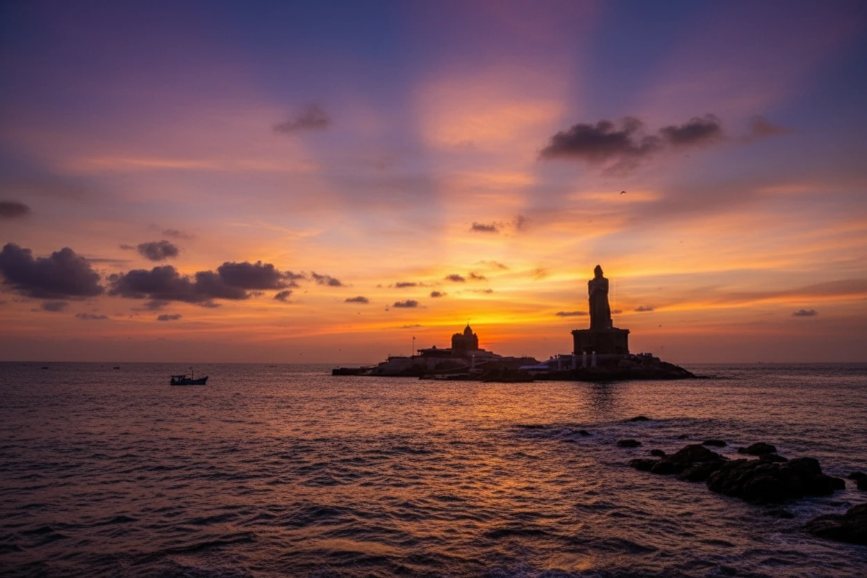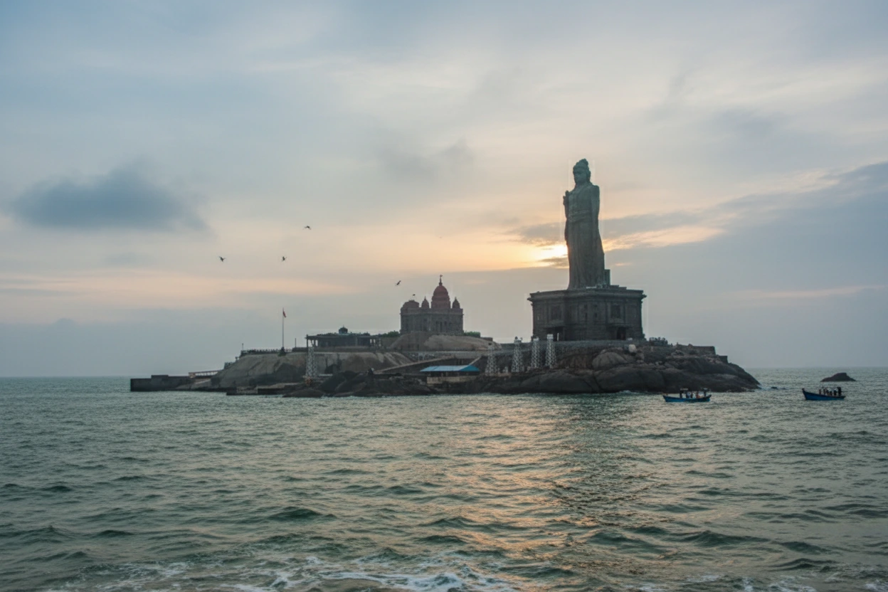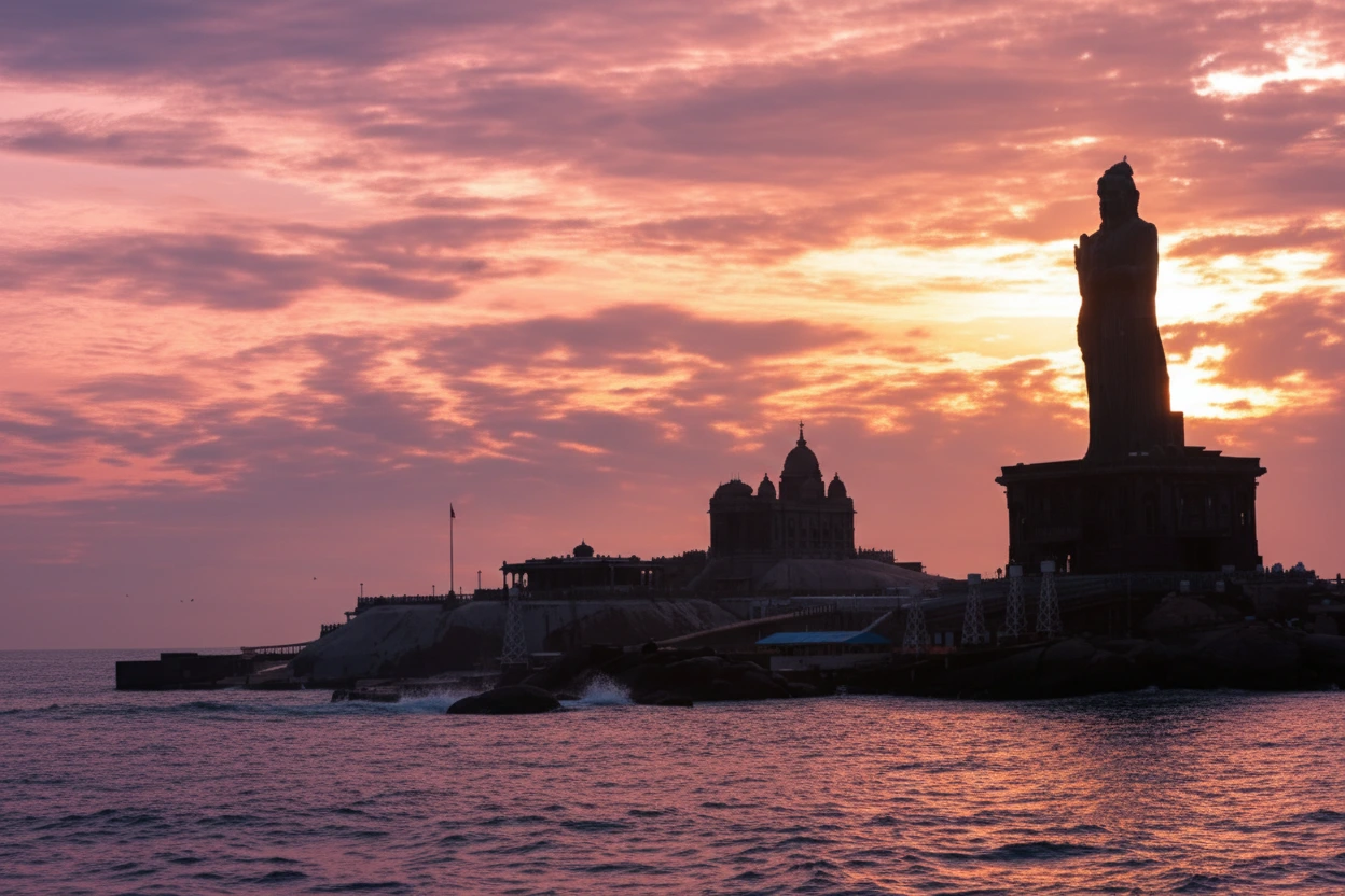 The Vivekananda Rock Memorial, located on a small offshore rock near Kanyakumari, is a major spiritual and cultural landmark. Built in 1970 to honor Swami Vivekananda, the memorial marks the place where he is believed to have meditated before his journey to spread spiritual knowledge. The site features calm surroundings, impressive architecture, and scenic sea views. Visitors must take a ferry to reach the memorial, making the journey itself a memorable experience.