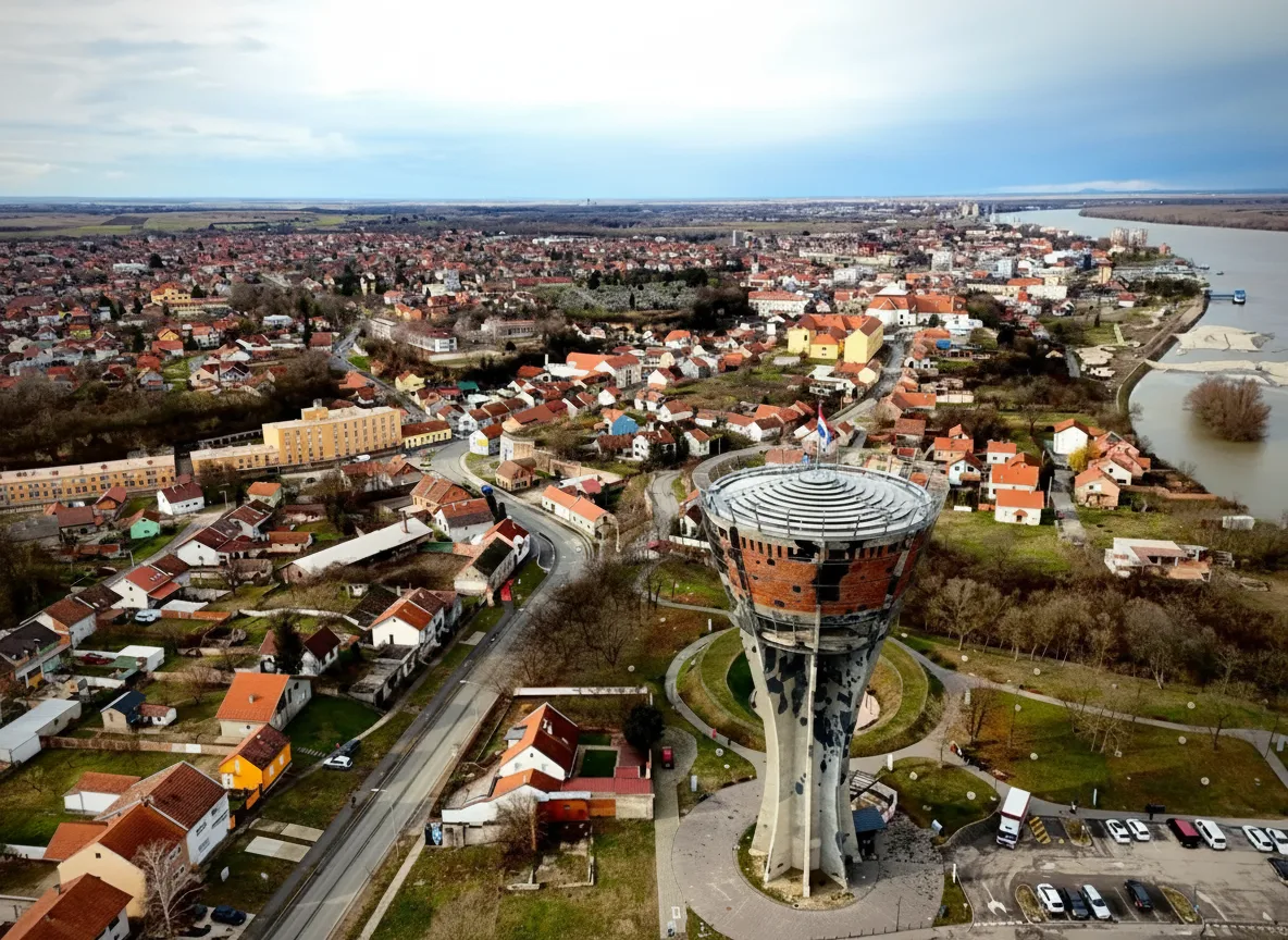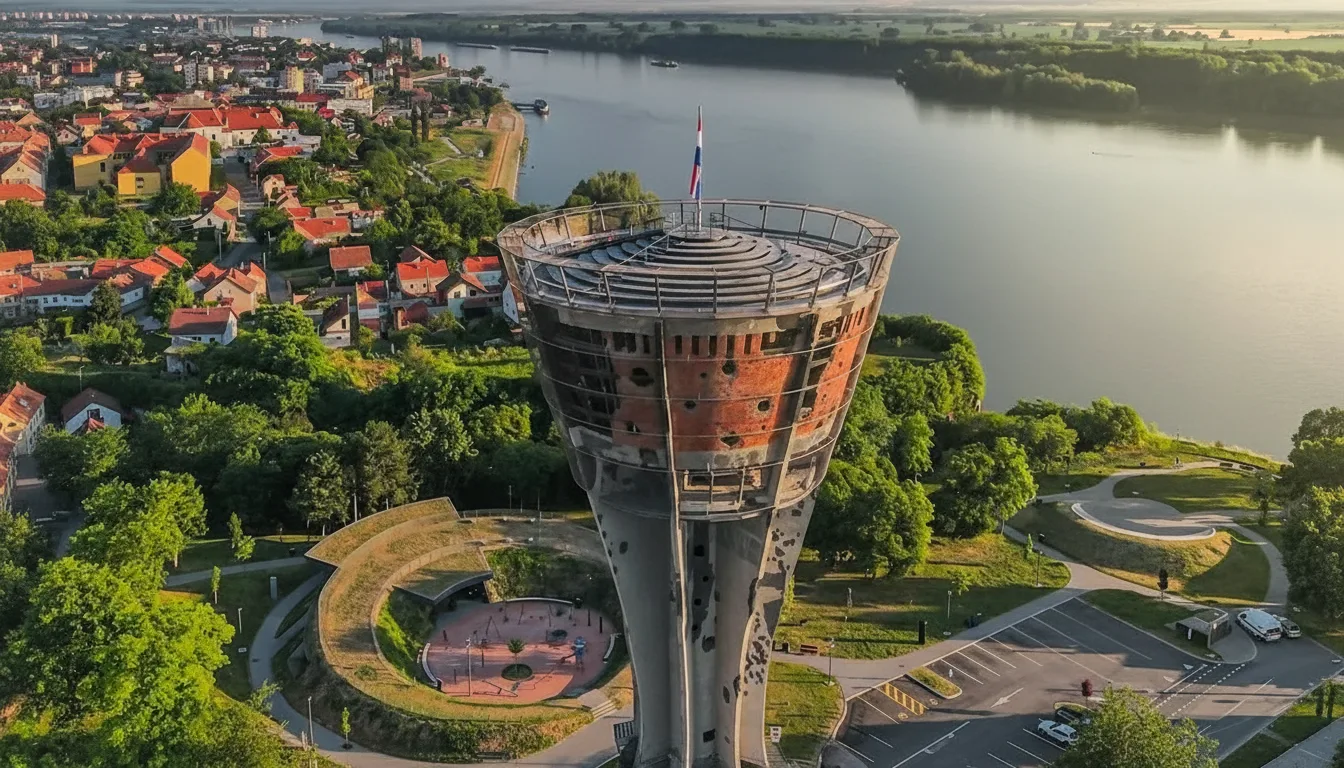The Vukovar Water Tower is one of the most important historic landmarks in Vukovar, Croatia. Standing as a powerful symbol of resilience, the tower remains preserved with visible war damage from the 1990s conflict. Today, the site serves as a memorial and viewing point, allowing visitors to reflect on the city’s history while enjoying panoramic views over Vukovar and the Danube River