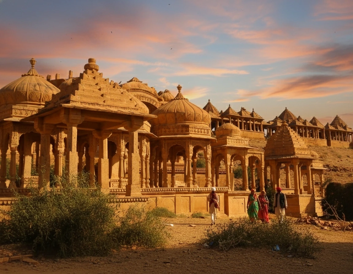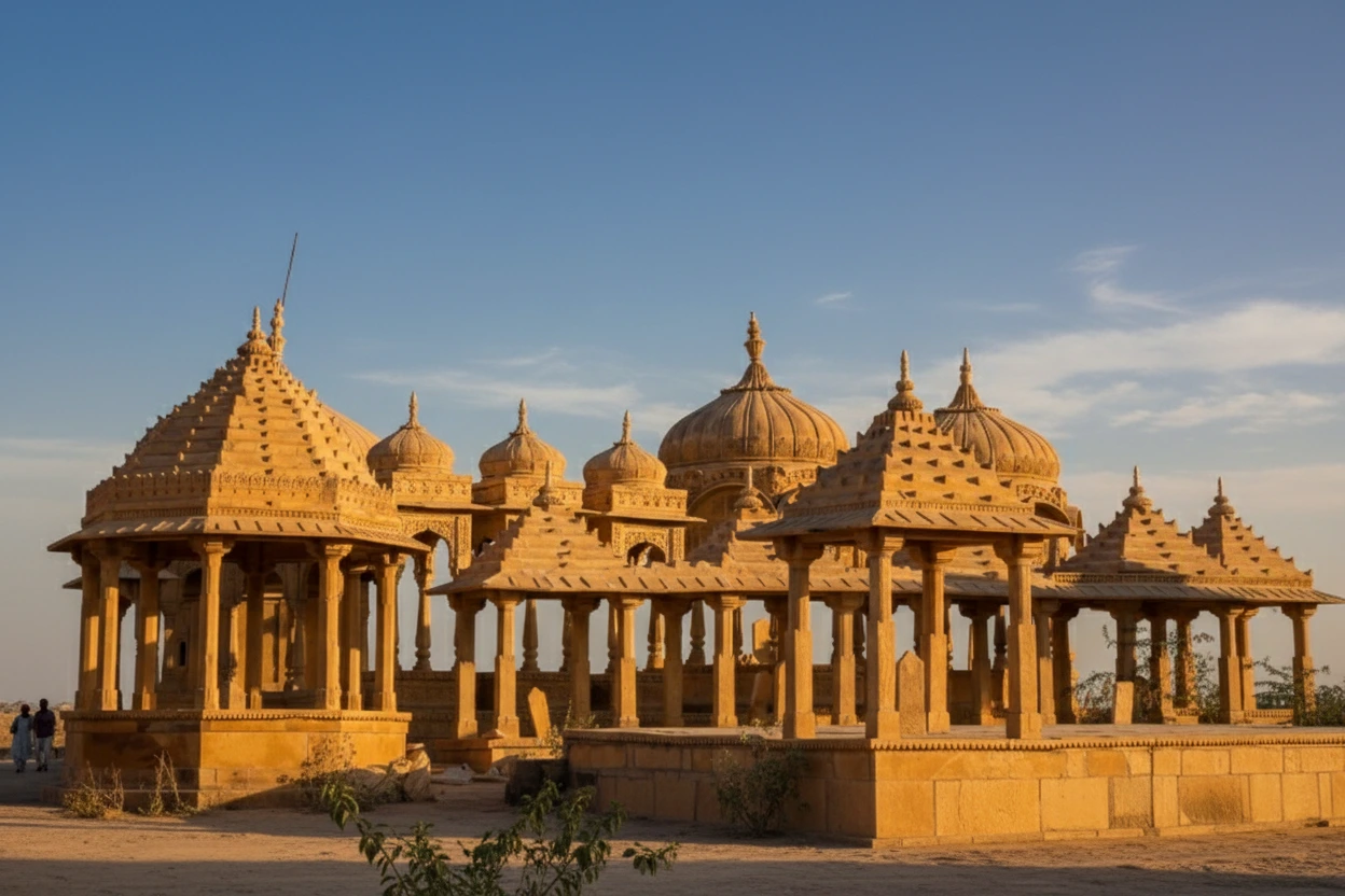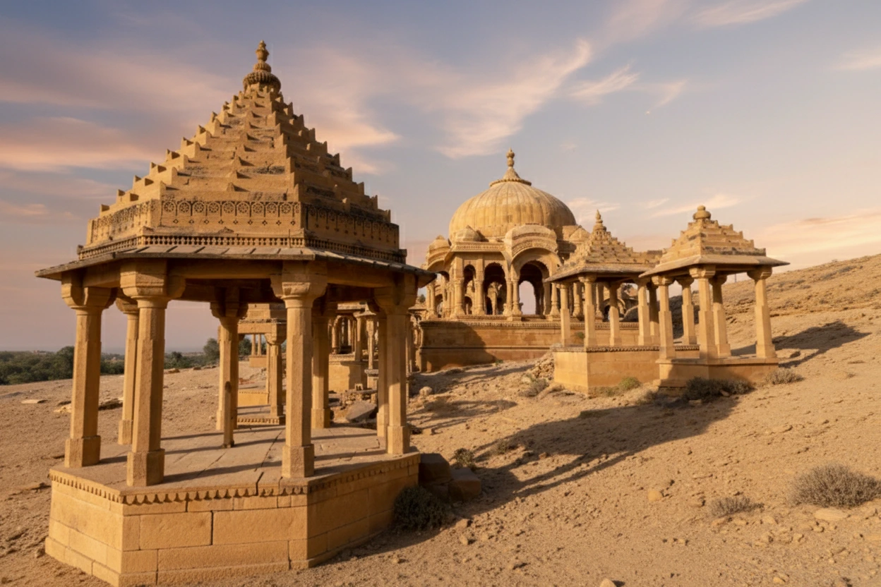 Vyas Chhatri is a historic sandstone memorial located on the outskirts of Jaisalmer, Rajasthan. Built in honor of the Brahmin community, the site consists of several beautifully carved cenotaphs and chhatris set on elevated ground.
