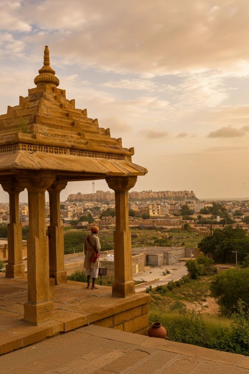 • 🌅 Enjoy sunset views 🌇 over the golden city of Jaisalmer 🏰