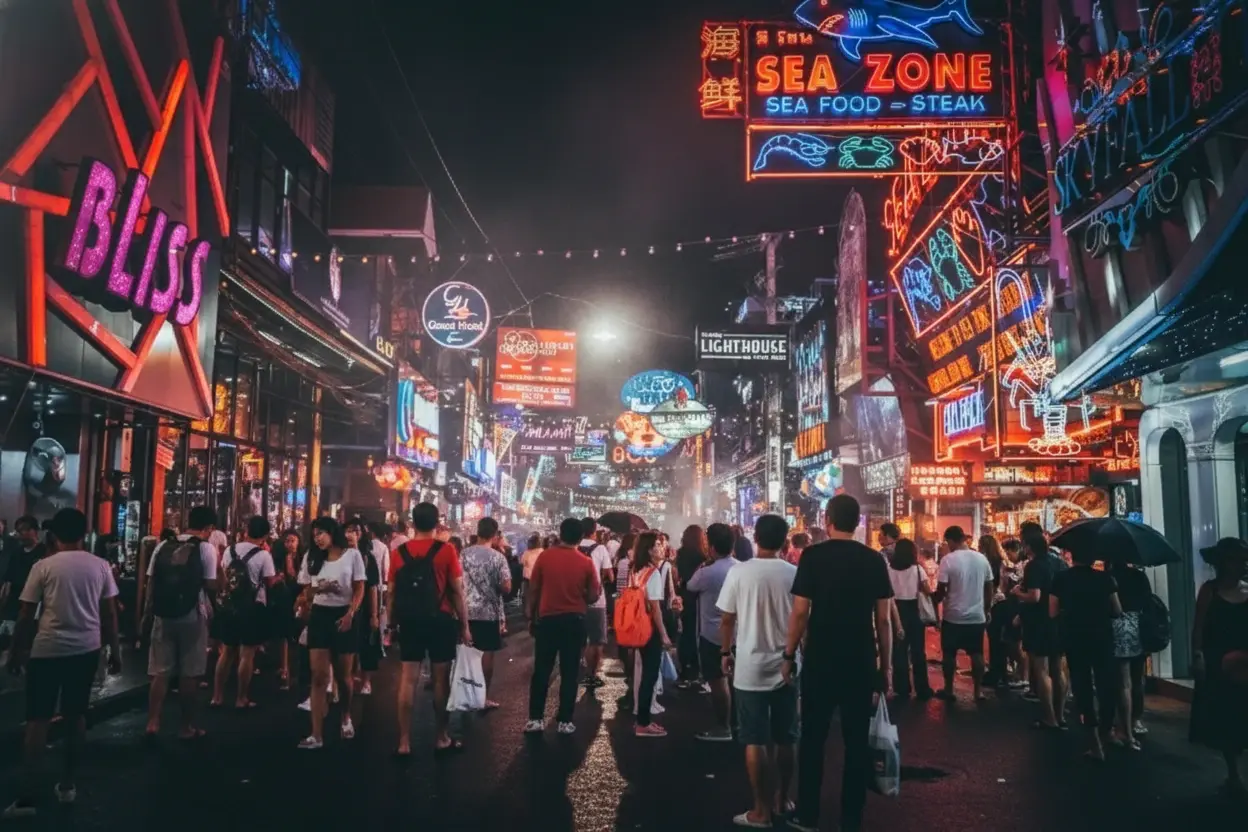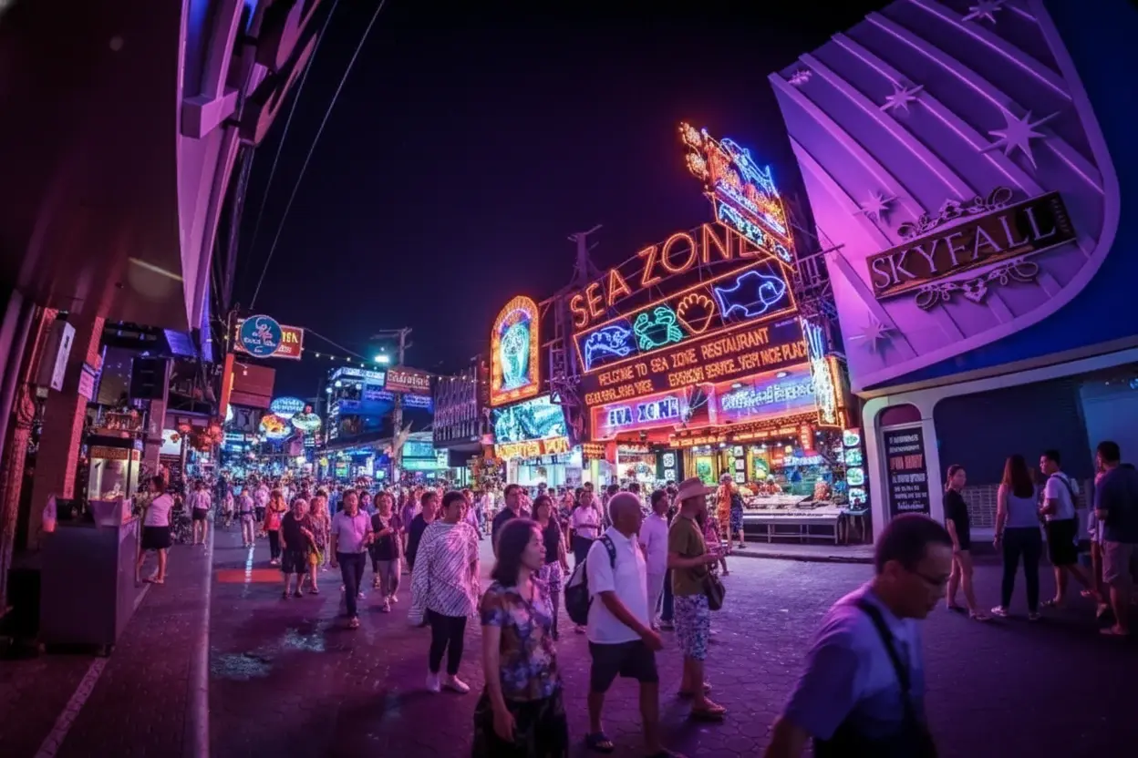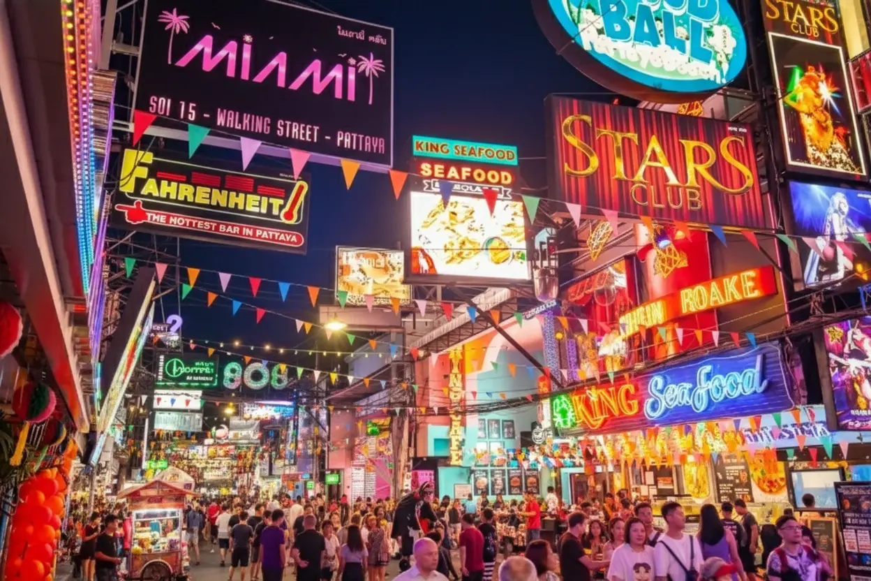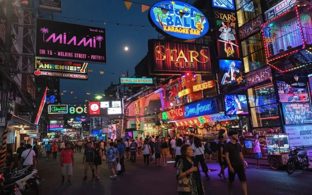 South Pattaya. At night, the street transforms into a vibrant hub of music, lights, and energy, filled