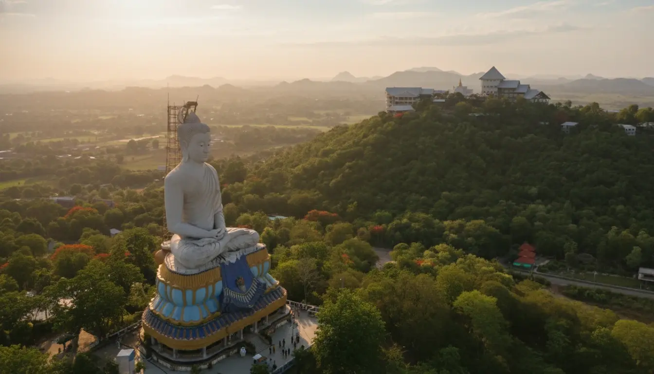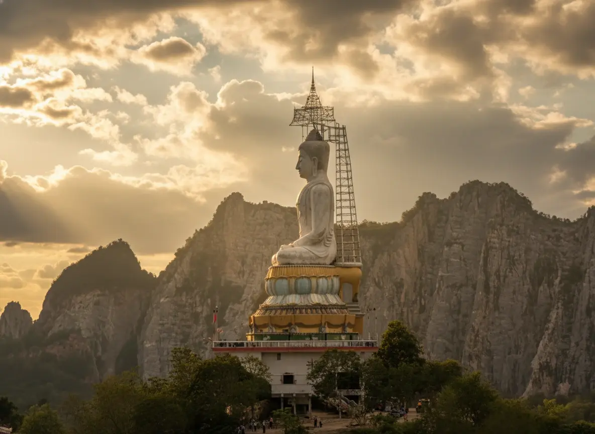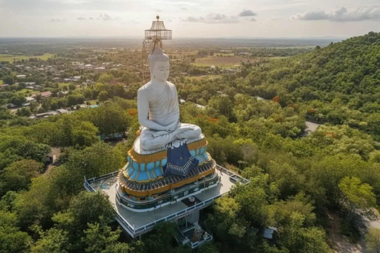 Wat Nong Hoi is a majestic temple located on a hilltop in Ratchaburi Province, Thailand. It is renowned for its large white Buddha statue that overlooks the surrounding countryside. The temple offers breathtaking panoramic views, making it a favorite destination for travelers and photographers seeking spiritual serenity and scenic beauty.