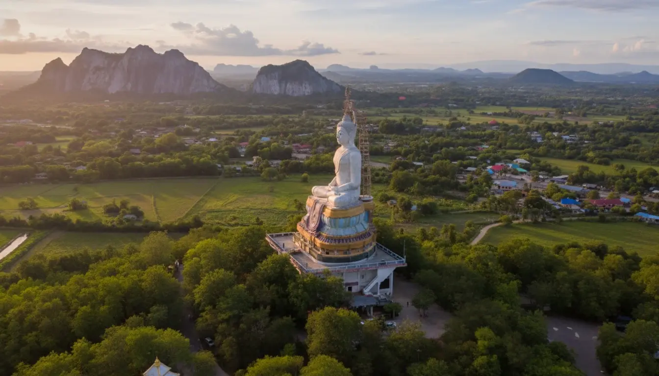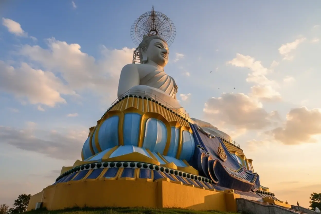 • Visit the iconic white Buddha statue 🧘‍♂️ (Luang Pho Yai) 🤍✨🙏
