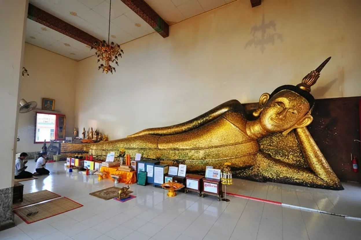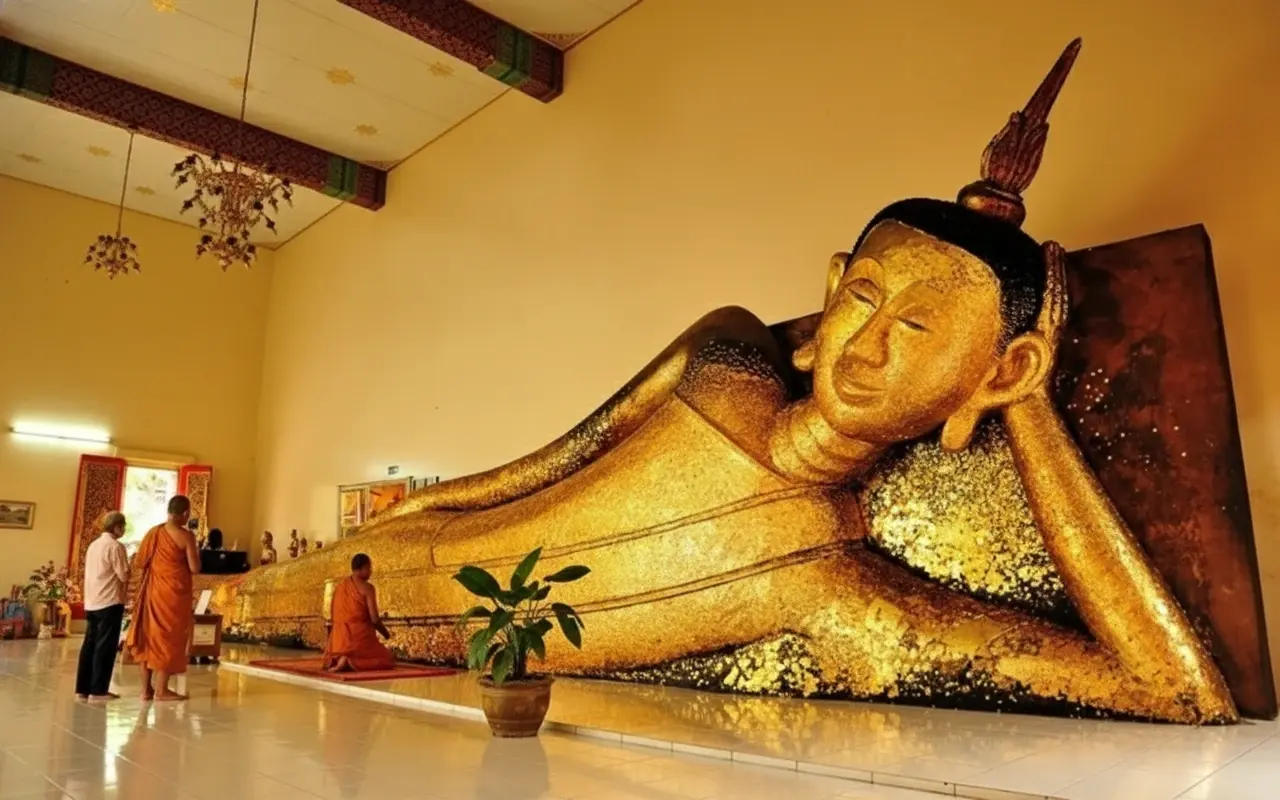 • Visit the rare left-sided ⬅️ reclining Buddha 🧘‍♂️, nearly 12 meters 📏 long ✨👑