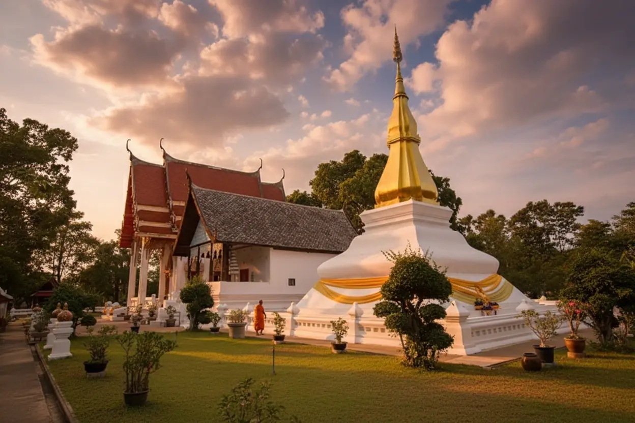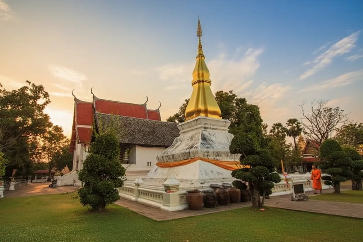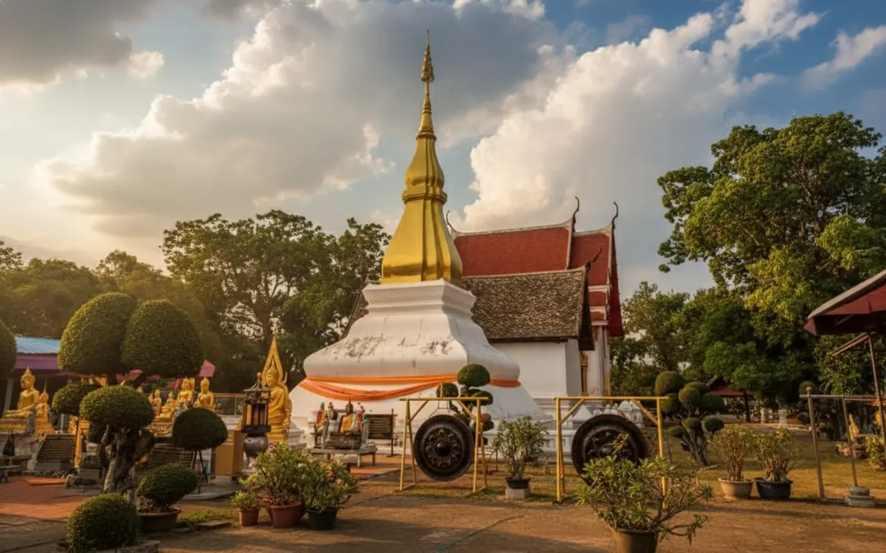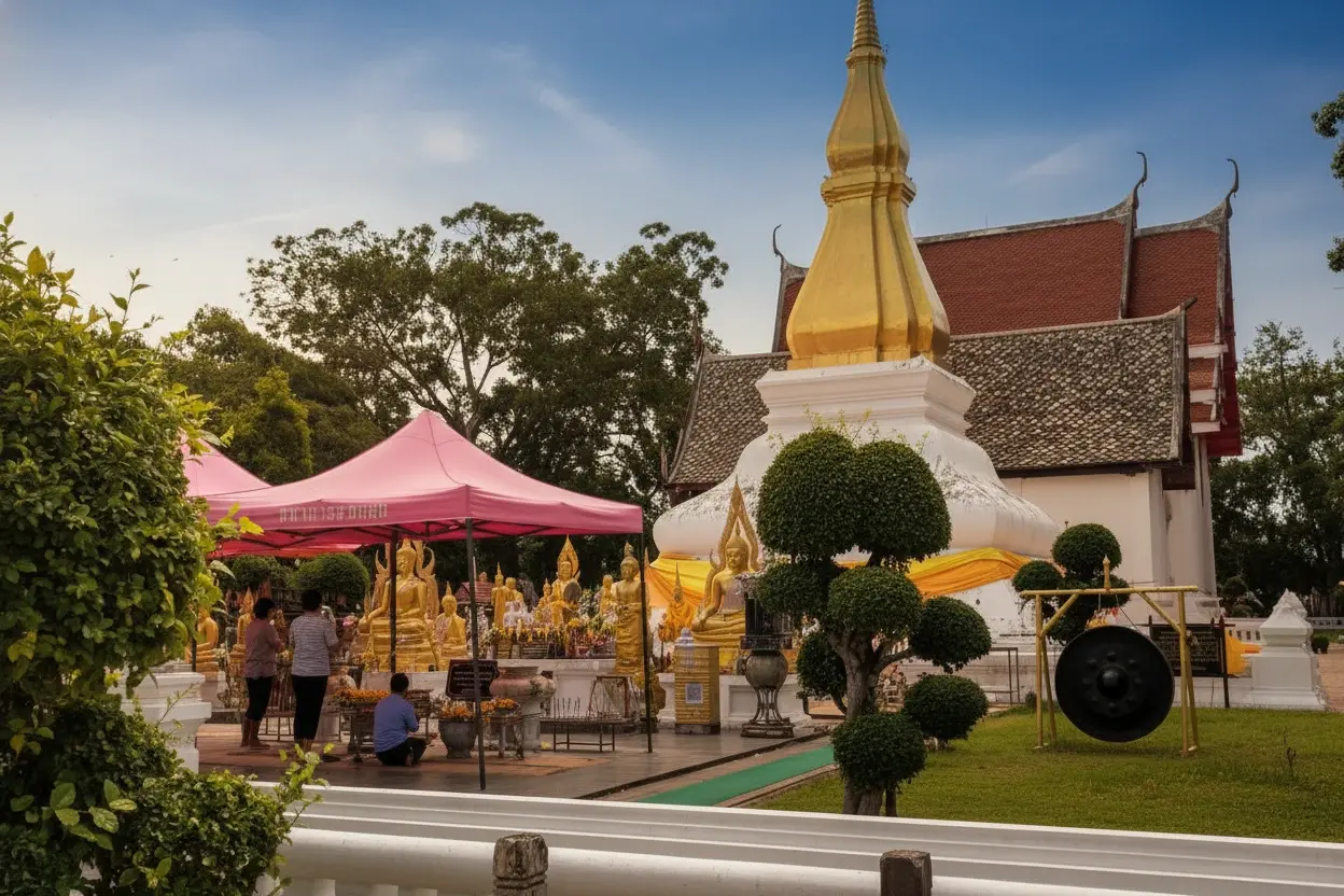 • 7:00 AM – Arrive 🧭 at Wat Phra That Kham Kaen 🛕💨