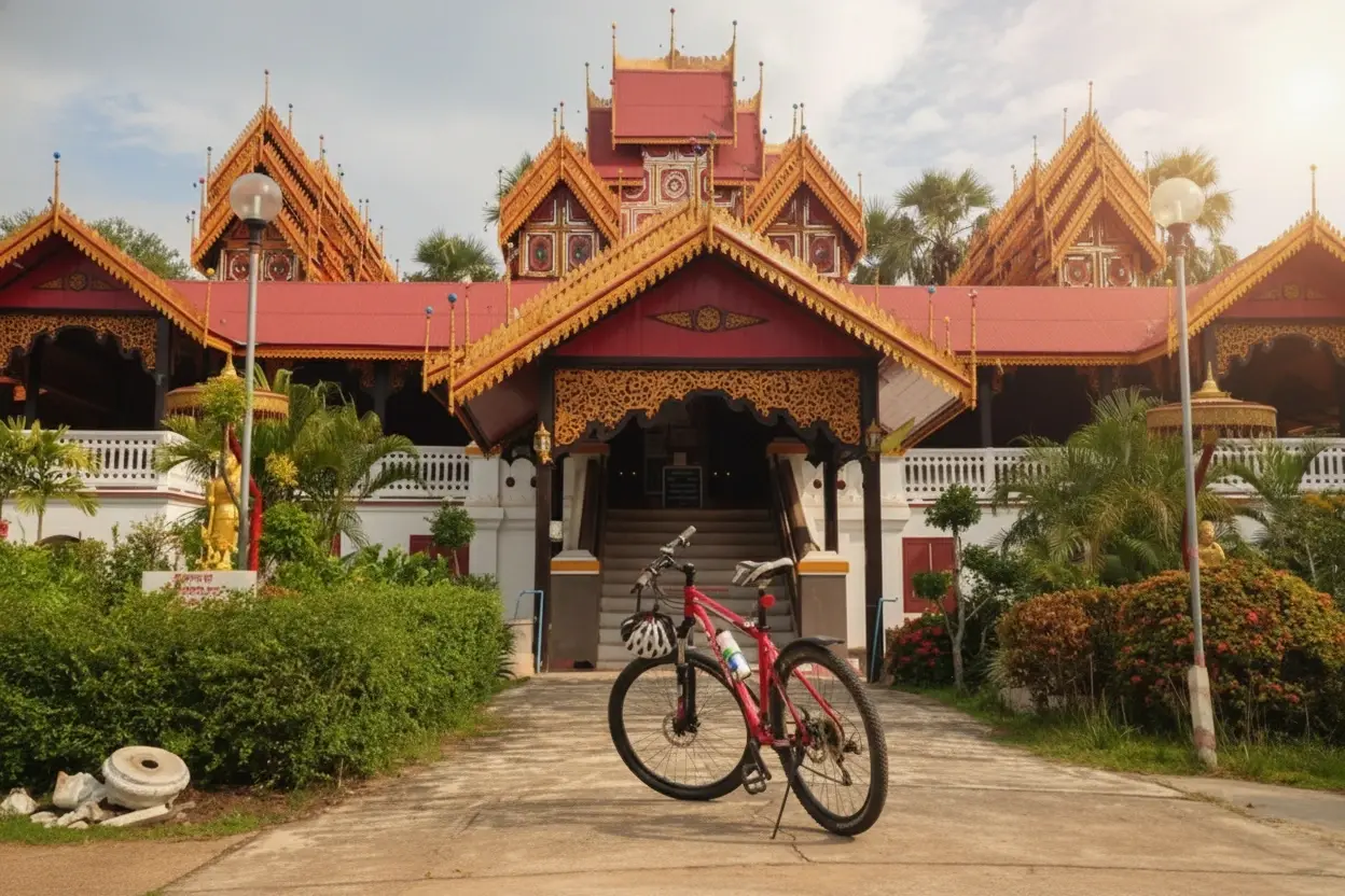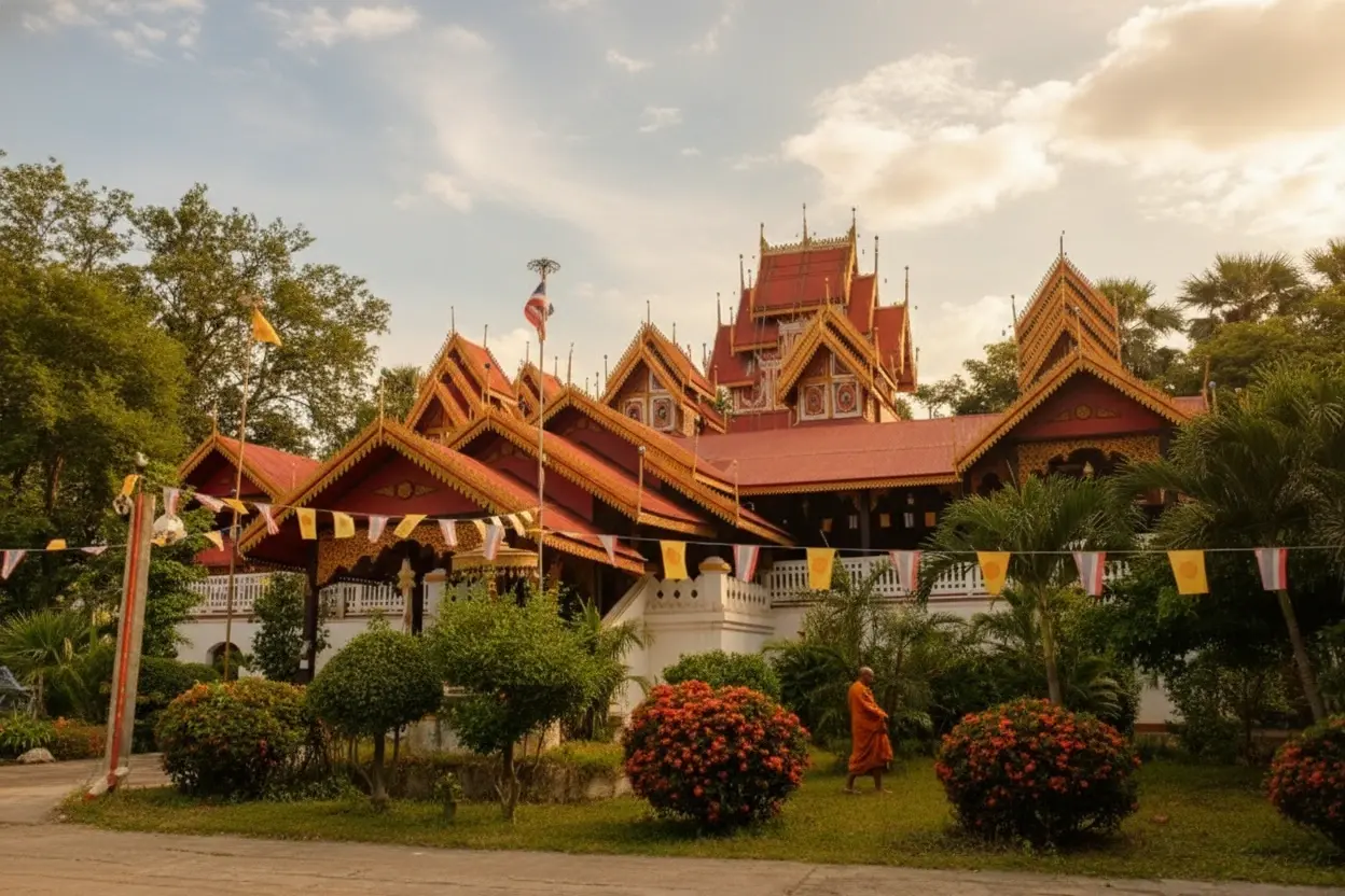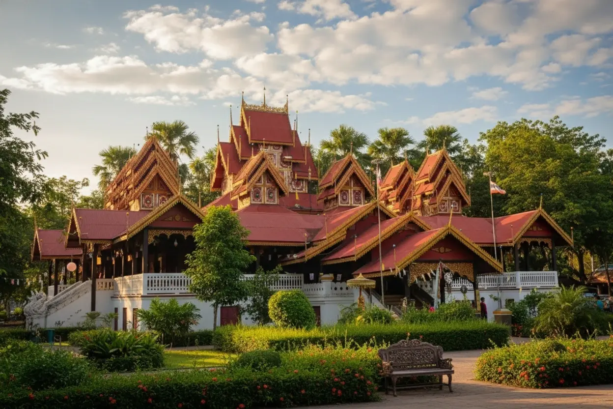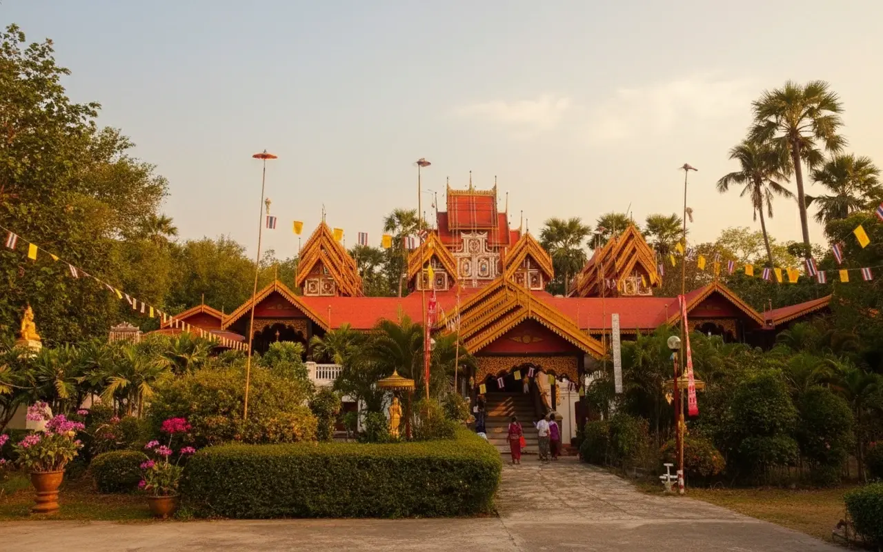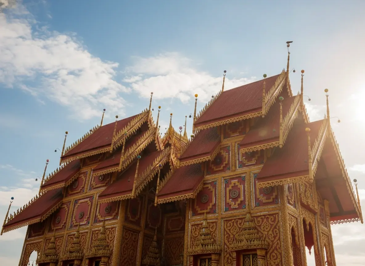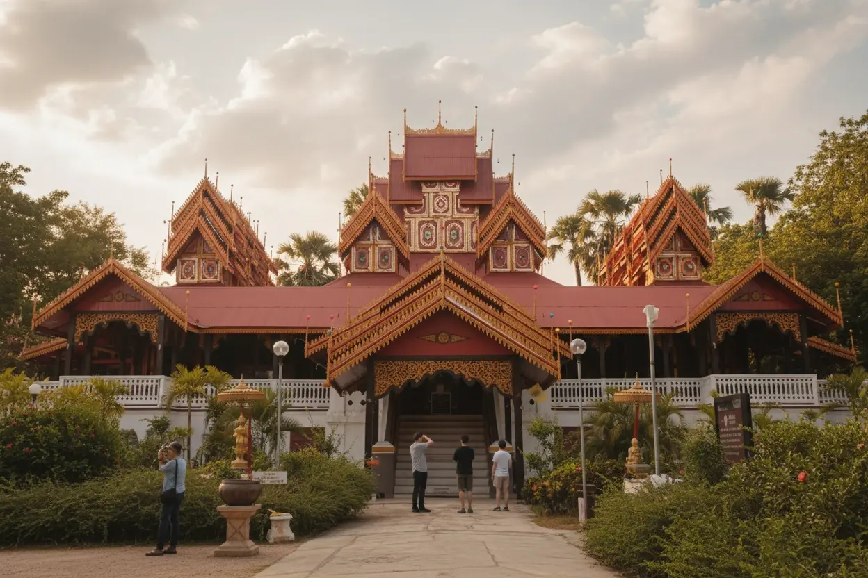Morning or late afternoon when the light enhances the teak details.