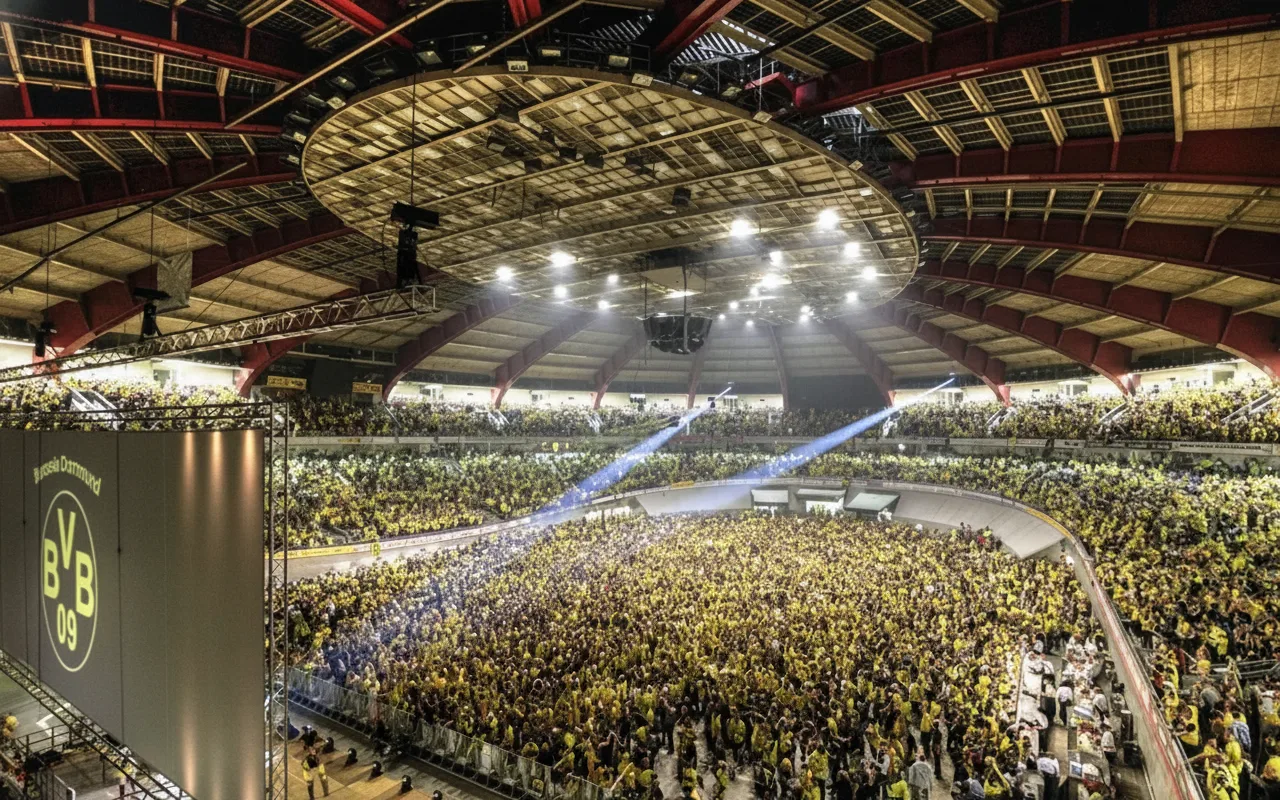 • 🕓 04:00 PM – Arrive at the Westfalenhallen and admire the historic 🏛️ entrance 🚪