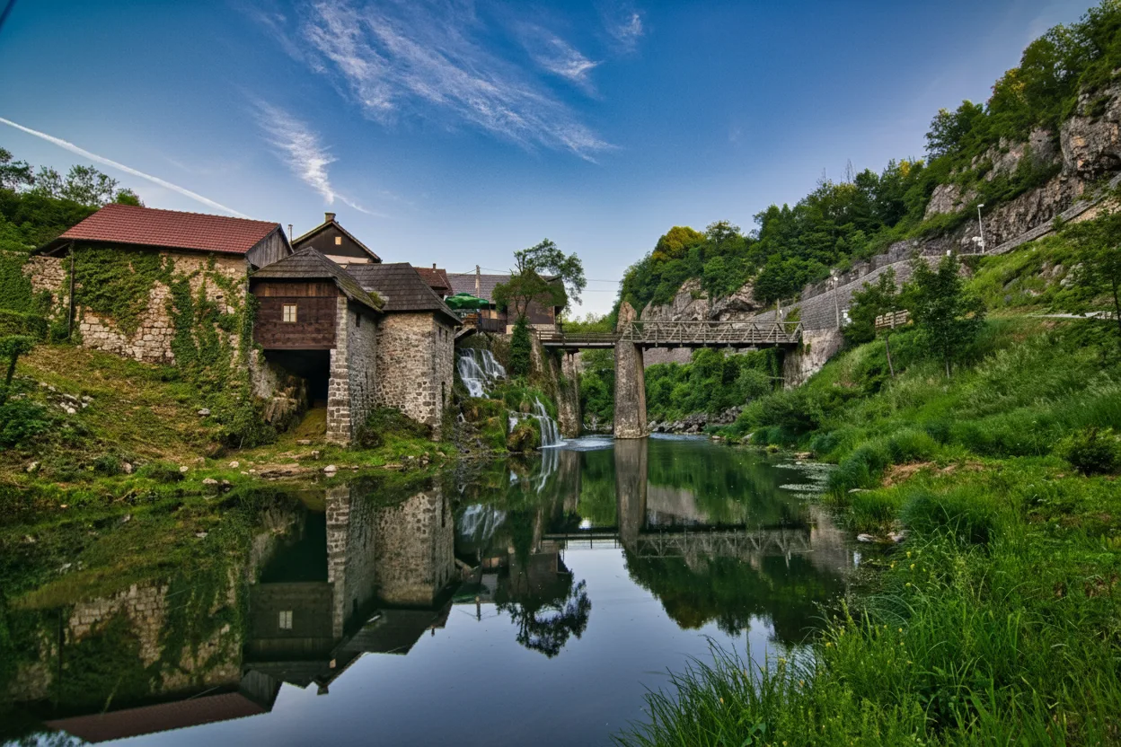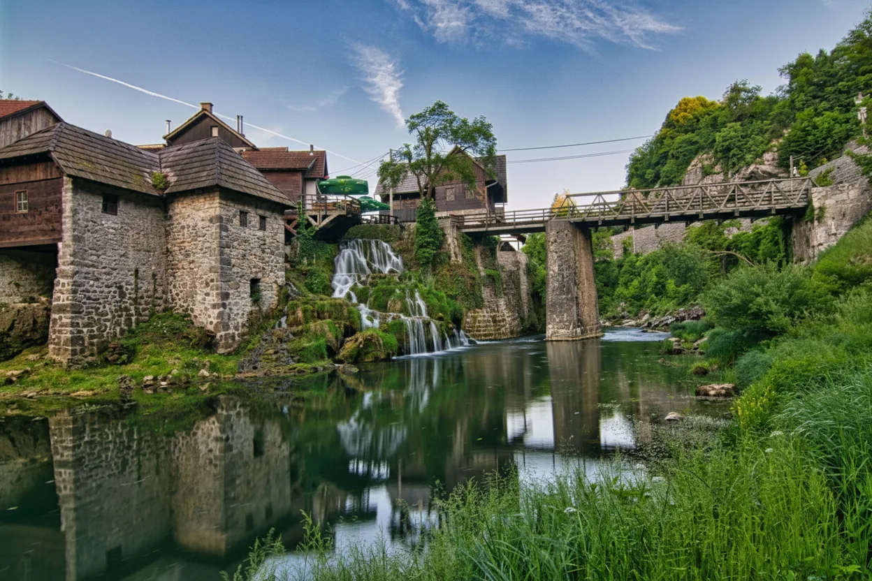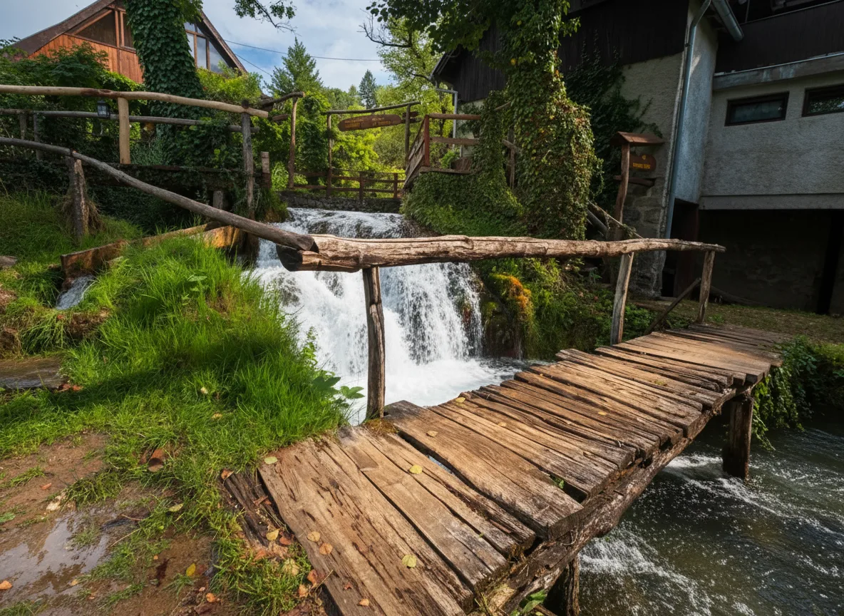 The wooden bridges of Rastoke Village connect different parts of the settlement across flowing streams and small waterfalls. These simple yet charming bridges are an important part of the village layout, allowing residents and visitors to move easily between houses, paths, and riverbanks. Walking across the wooden bridges offers close views of watermills, cascading water, and traditional architecture. They are also popular spots for photography due to their natural setting and rustic design.
