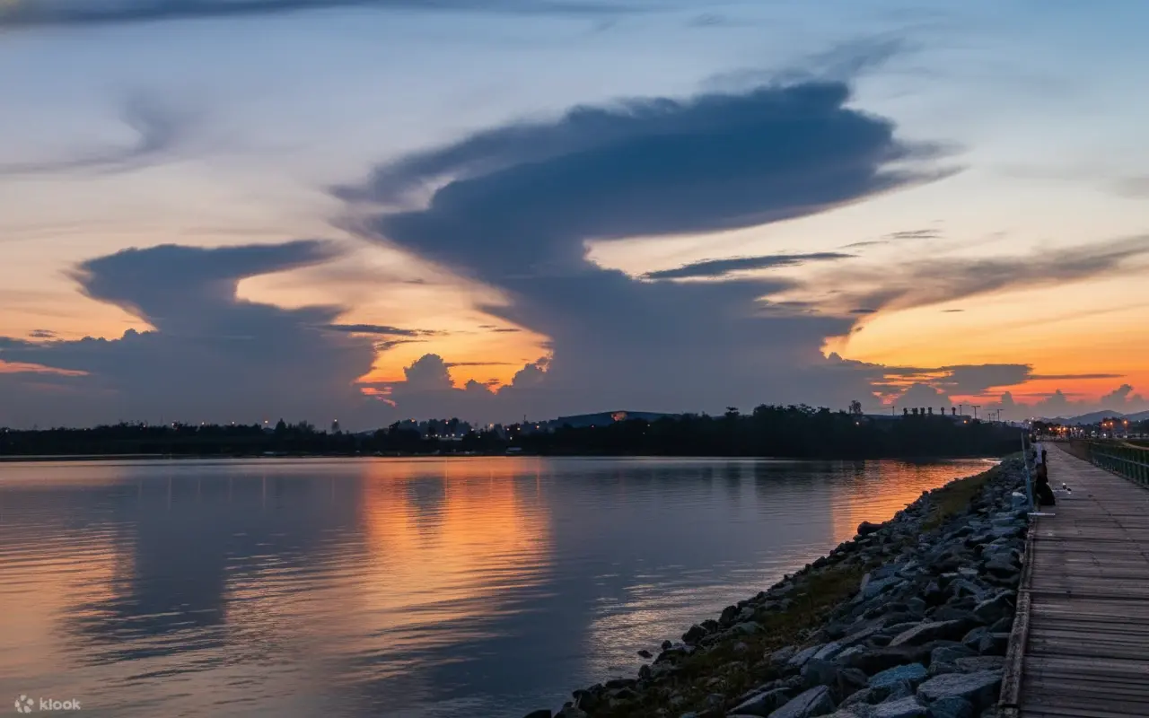 Yishun Dam is a calm and scenic waterfront location situated in the northern part of Singapore. Known for its open views of the Johor Strait and cooling sea breeze, it’s a favorite evening hangout for locals, photographers, and cyclists. The peaceful surroundings make it one of the best free places in Singapore to enjoy sunset views away from the city crowd.