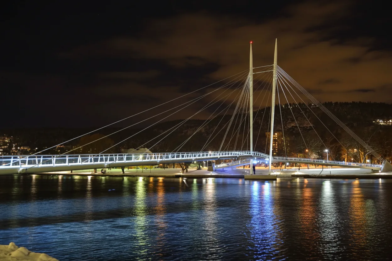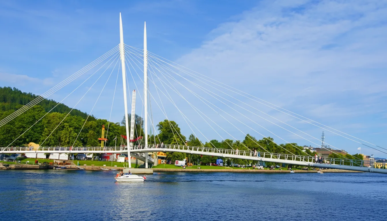 The Ypsilon Bridge is one of Drammen’s most recognizable landmarks, known for its unique Y-shaped design and modern architecture. It connects key areas of the city while serving as a symbol of Drammen’s urban renewal. The bridge is designed for pedestrians and cyclists, making it an enjoyable place to cross the river on foot. Wide walkways allow visitors to pause, enjoy river views, and take photos without rushing. For travelers, Ypsilon Bridge offers a simple but memorable experience, especially in the evening when the structure is softly lit and reflections appear on the water.