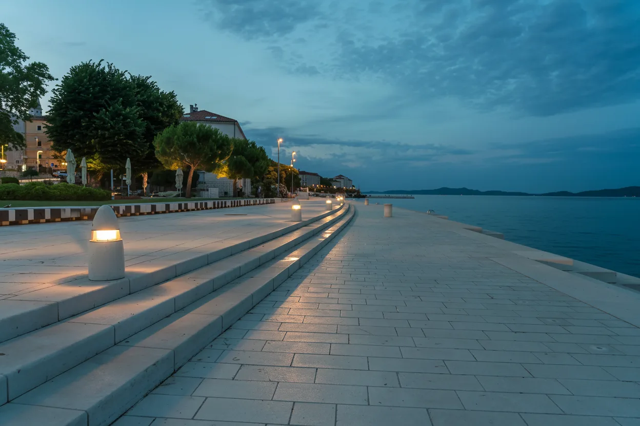 The Zadar Waterfront stretches along the edge of the Old Town peninsula and offers one of the most enjoyable seaside walks in the city. It combines historic stone walls with open views of the Adriatic Sea. Locals and visitors come here to walk, relax, and enjoy fresh sea air while watching boats, islands, and changing light throughout the day. For travelers, the Zadar Waterfront is ideal for slow strolls, photography, and experiencing the city’s strong connection to the sea.