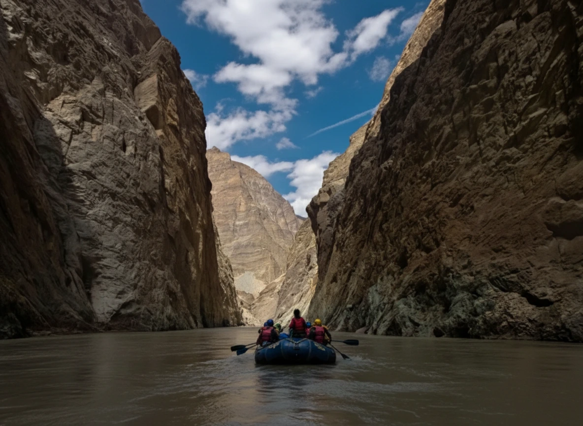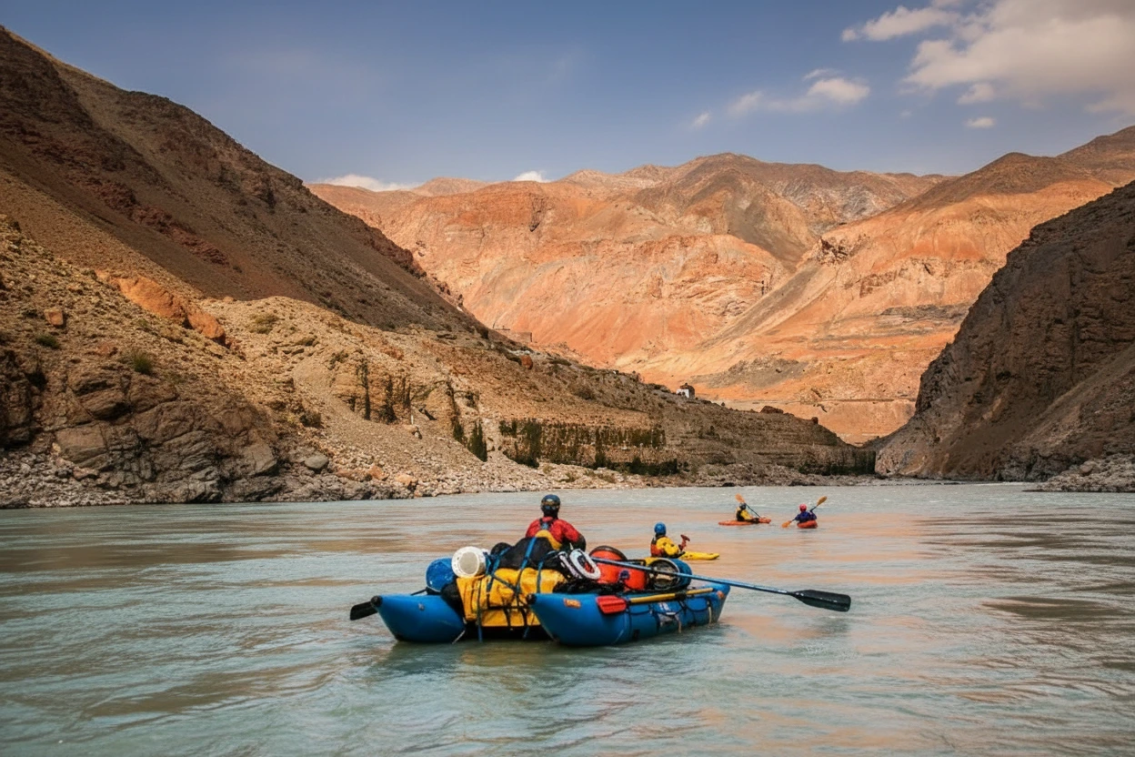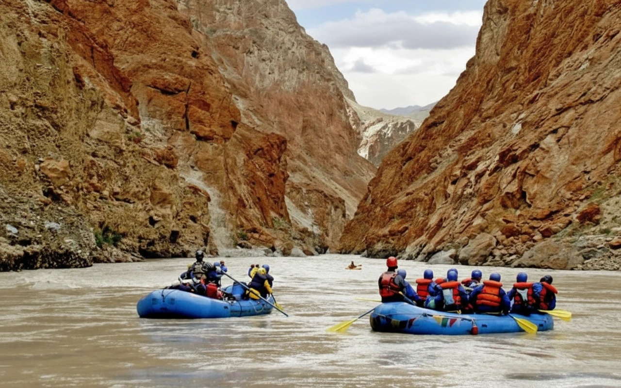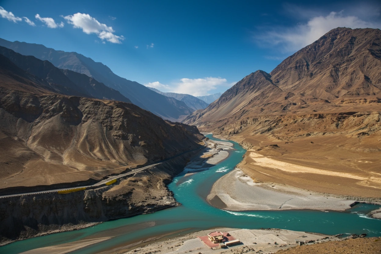 The Zanskar River is a major river flowing through the rugged landscapes of Ladakh. It originates from glaciers in the Zanskar range and cuts deep gorges through the mountains before joining the Indus River. For travelers, the Zanskar River is known for its dramatic scenery and adventure opportunities. The river supports local villages and is famous for winter trekking routes such as the Chadar Trek.